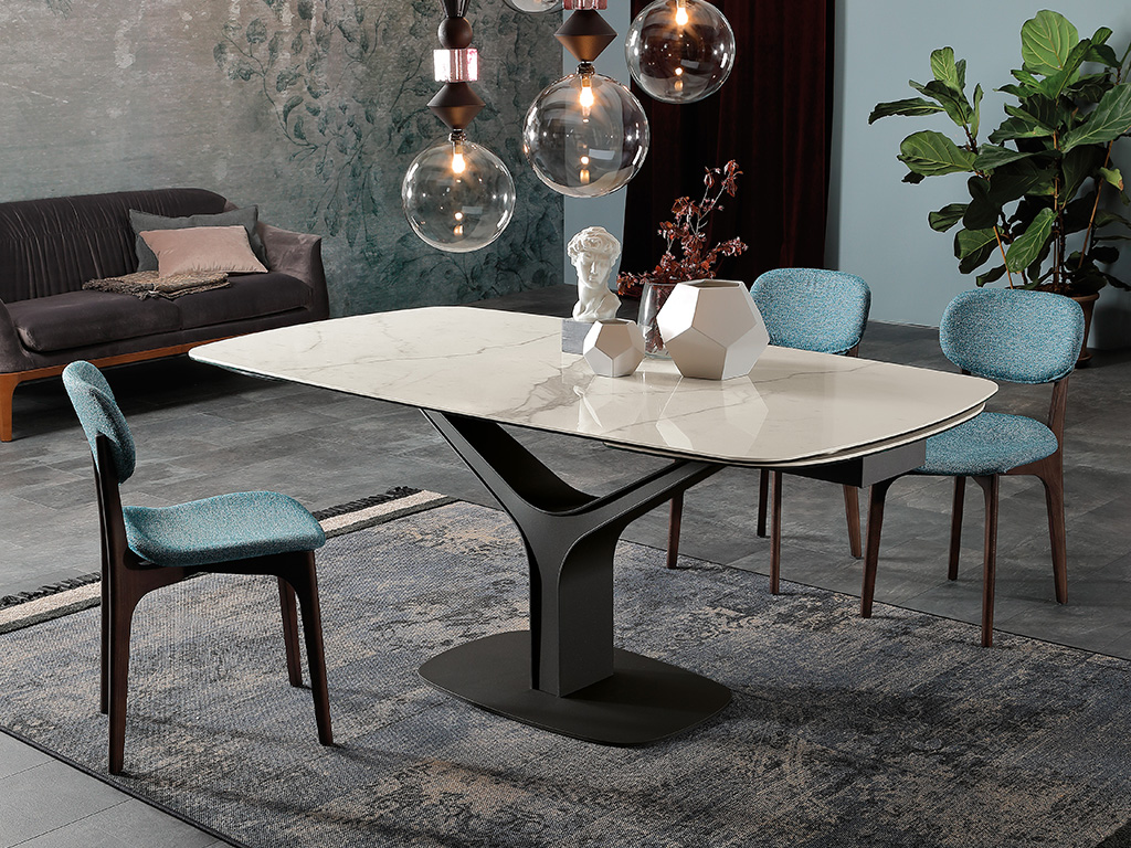 - The table top is made of a newly invented material – Super Ceramic, this material is very popular in Europe which has undergone advanced technology treatment to cover table top with ceramic. It is durable, scratch and heat resistant.