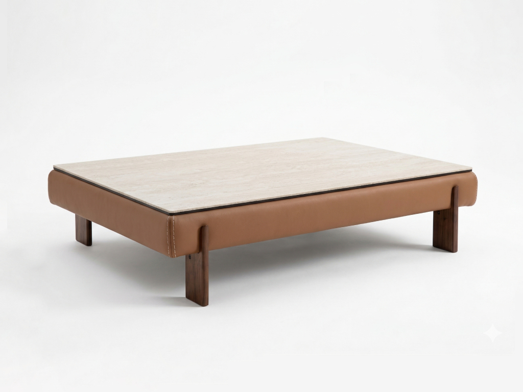 - Tokyo茶几以皮革包覆木質框架,呈現混搭歐洲高級品味