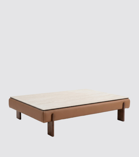 - Tokyo茶几以皮革包覆木質框架,呈現混搭歐洲高級品味
